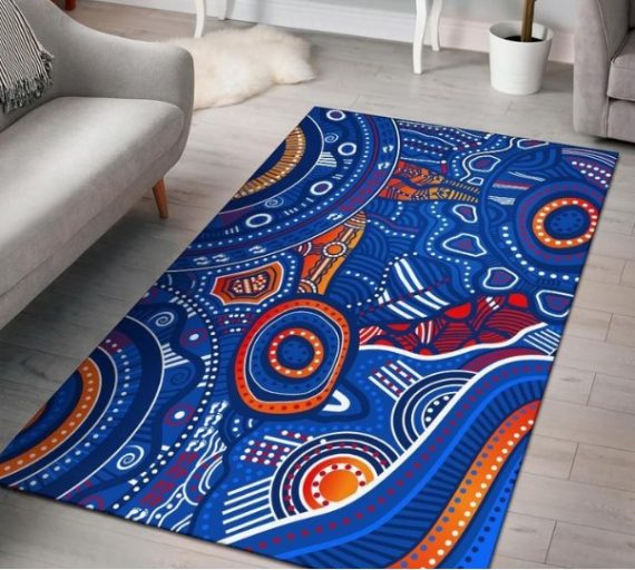 Aboriginal Australia Indigenous Footprint Patterns Blue Color Art Rug HG