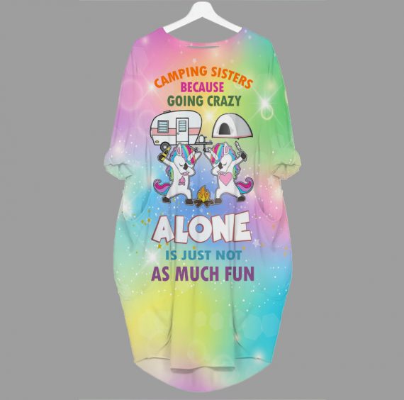 Gift For Sisters Day Camping Sisters Unicorn Batwing Pocket Dress QDH